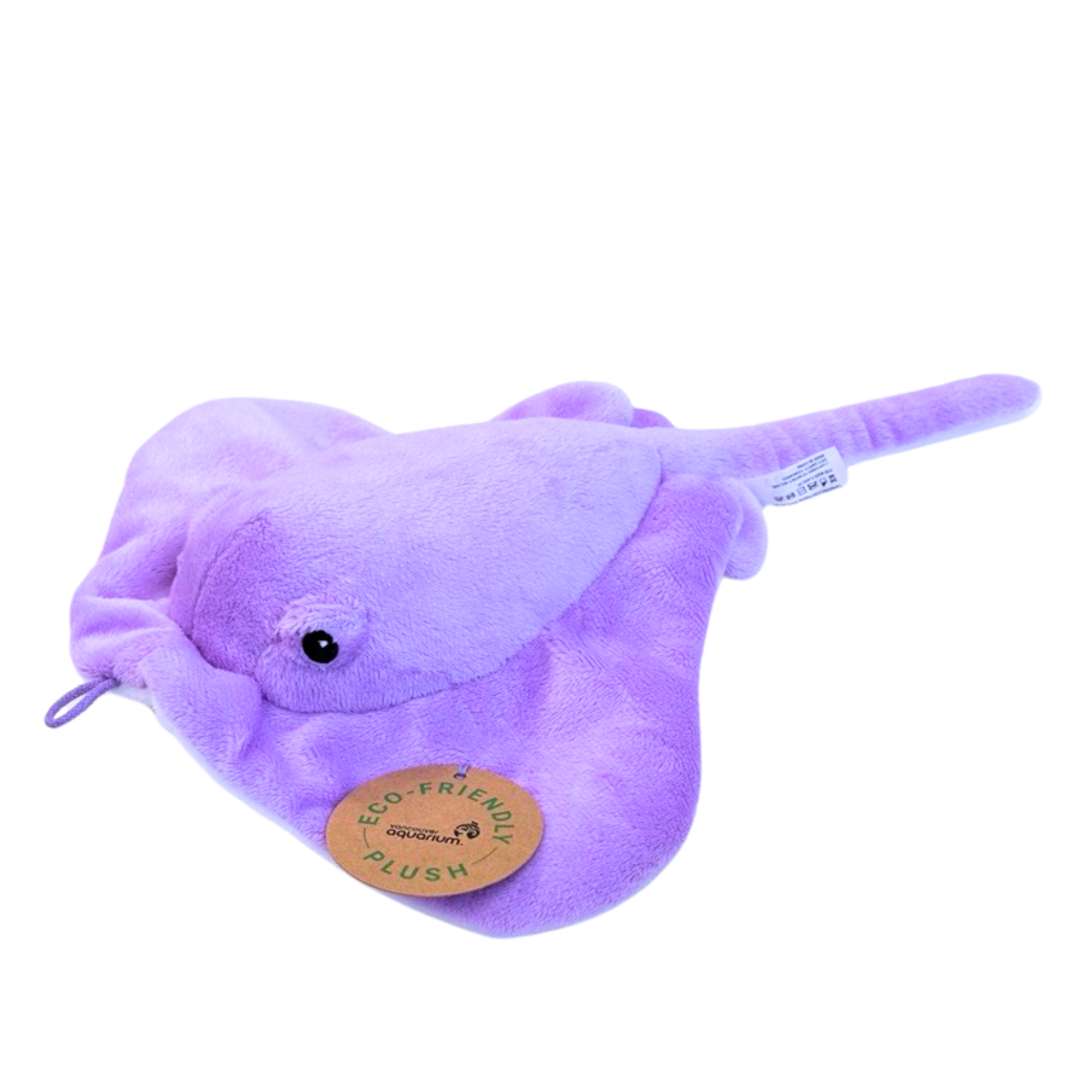 This stuffy ray is offered in 3 different colours: blue, pink, and purple. They are plastic free.